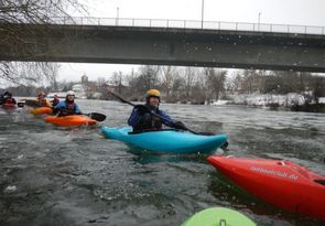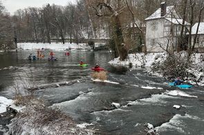 6. Januar - Dreikönig, traditionell startet der BFC das neue Jahr mit seinem Dreikönigspaddeln. Organisiert wurde die Ausfahrt von Tanja, unter tatkräftiger Mithilfe von Geli und Susi. Geplant war eine Stadtrunde. Bei -6° starteten 16 unerschrockene ‚eisbereifte‘ Paddler Richtung Jahnwehr. Die ersten Eisflächen waren leicht zu überwinden und ab Kettenbrücke war das Wasser frei von Eisschollen.