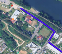 Fahre bitte rechts am Gelände der BRK-Wasserwacht vorbei.